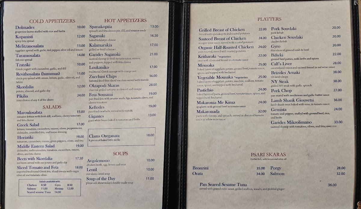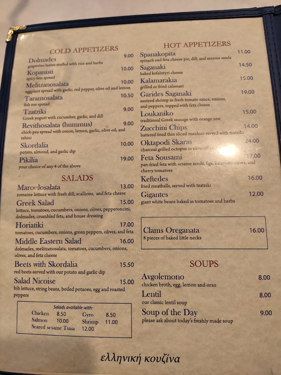 The Greek Kitchen in New York City offers a vibrant taste of authentic Mediterranean and Greek cuisine, skillfully blending tradition with freshness. The menu shines with both cold and hot appetizers, featuring classics like Dolmades—delicate grapevine leaves stuffed with herbed rice—and the creamy Tzatziki, a refreshing mix of Greek yogurt, cucumber, garlic, and dill. The warm starters, such as Spanakopita, a crispy spinach and feta pie, and Saganaki, baked kefalotyri cheese, showcase rich, comforting flavors that celebrate the heart of Greek culinary heritage.